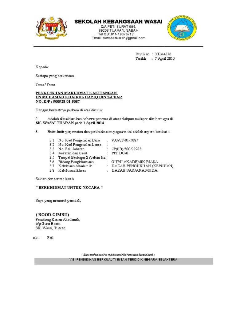 Surat Pengesahan Jawatan Guru Letter 7saudara Com